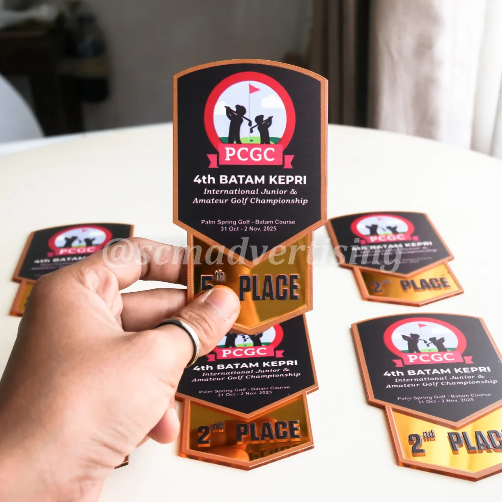 Sign akrilik gold Jogja. SCM Advertising Jogja melayani produksi sign akrilik Jogja dengan tinta cetak maupun visual sticker.